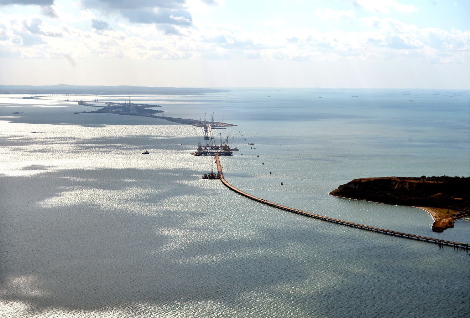 Одна из самых масштабных строек в истории современной России и самый длинный мост страны — входит в число символов и путинского президентства в целом, и «присоединения» Крыма. Буквально на следующий день после объявления об аннексии в 2014 году Владимир Путин поручил Министерству транспорта разработать проект переправы. По задумке, мост длиной 19 километров должен был соединить Таманский и Керченский полуострова.