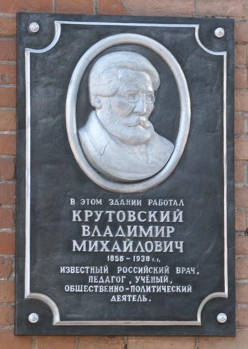 Другое знаковое место, связанное с Крутовскими, – Красноярский медицинский колледж. Он носит имя Владимира Михайловича, который большую часть жизни прожил в Красноярске и, в отличие от брата, надолго за границу не выезжал. После окончания гимназии поступил в медико-хирургическую академию Санкт-Петербурга. Вернувшись домой с дипломом врача-офтальмолога, стал одним из основателей Красноярской городской лечебницы, Общества врачей Енисейской губернии и женской акушерско-фельдшерской школы. Еще будучи молодым лекарем, он отмечал жалкое состояние врачебной помощи в Енисейской губернии и участвовал в открытии бесплатной амбулатории для бедных, которая появилась в 1885 году. Еще одной серьезной проблемой того времени была нехватка кадров. В 1887 году Владимир Крутовский открыл при лечебнице частные медицинские курсы, на которых училось сначала 8 девушек. Через два года курсы передали Обществу врачей, и они стали называться школой фельдшериц. Выпускницы школы работали в больницах и лечебницах Красноярска, их командировали для борьбы с эпидемиями. Первые годы школа существовала на пожертвования частных лиц. В 1895 году в ней был организован марксистский кружок, а в здании, где она располагалась, находился подпольный центр по распространению большевистской газеты "Искра".
