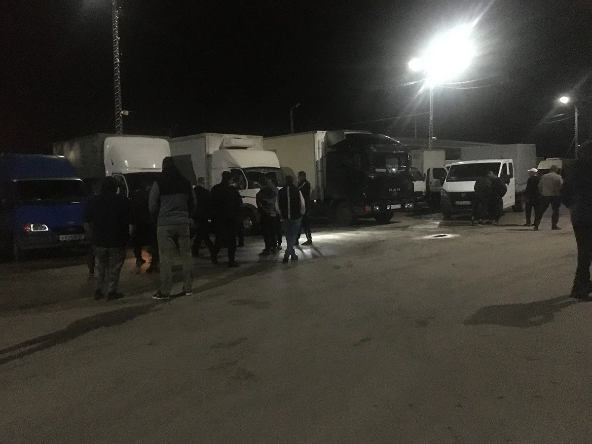 Денис приехал шесть часов назад в накопитель перед паромом на «Газели», на которой он перевозит мебель. До этого стоял в накопителе у бывшего керченского аэропорта 14 часов. В отличие от тех, кто «пробится» на дороге на мост, у водителей малотоннажек есть возможность немного передохнуть. Здесь есть спальные места, горячие напитки, организовано питание, есть туалет. Дежурят добровольцы и сотрудники МЧС. В накопителе никаких процедур досмотра не происходит. Инспекция проводится непосредственно перед воротами для въезда на паром — вдоль машин ходит сотрудник полиции с собакой.