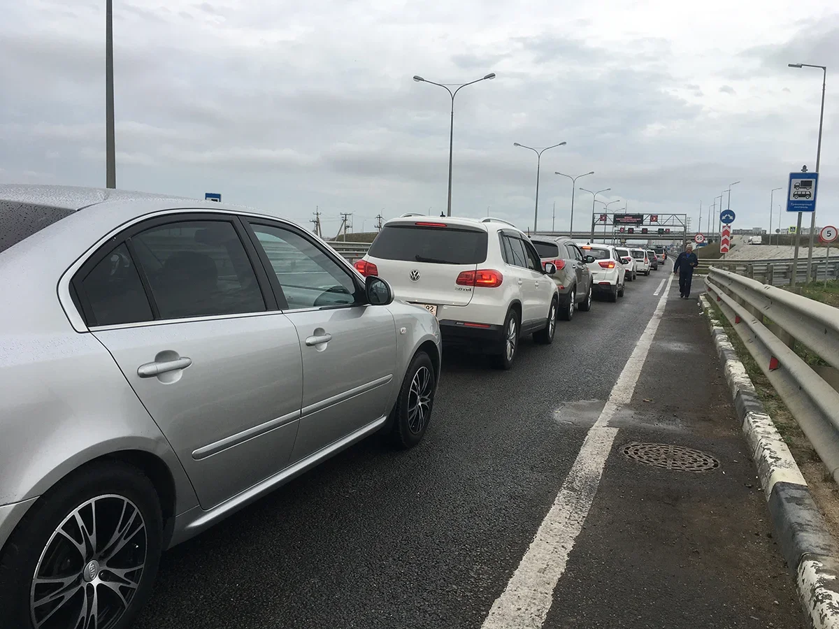 Настроения в пробке разные. Становлюсь свидетелем того, как мать истерично кричит на дочь лет двенадцати: требует, чтобы та поскорее села в автомобиль — до поста ГИБДД всего ничего, пару сотен метров. Мимо нас проезжает мини-вэн с открытой дверью, где уютно расположились пятеро мужчин лет сорока и женщина. В салоне накрыт стол. В пробке они стоят порядка семи часов. Ехать или нет на полуостров другим? Ответить единогласно не могут. По мнению дамы, беда лишь только в пробке, мужчины же полагают, что стоит понаблюдать, как дальше будет. Но весь мини-вэн надеется, что «какой-то военный ответ после взрыва на мосту непременно последует».