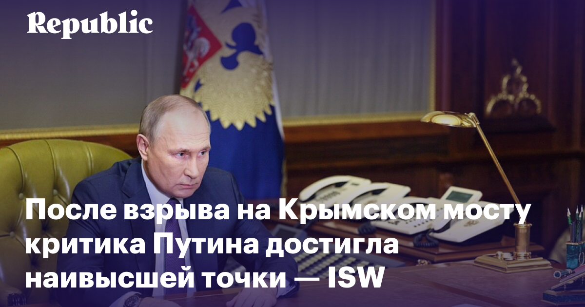 ISW: после взрыва на Крымском мосту критика Путина достигла наивысшей точки