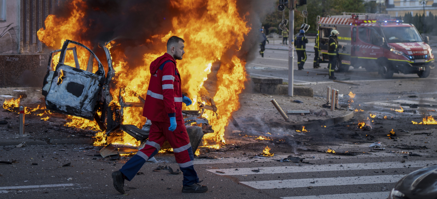 Российские войска выпустили по Украине 84 ракеты, из которых 43 были сбиты системами ПВО, заявили в украинском минобороны. ВВС страны уточнили, что атака велась силами российской стратегической авиации (ракеты Х-101 и Х-555), крылатыми ракетами «Калибр» с кораблей Черноморского флота, баллистическими ракетами «Искандер» и ракетами ЗРК С-300, а также РСЗО «Торнадо-С» и беспилотниками. Минобороны России сообщило, что цель удара достигнута, все назначенные объекты поражены.