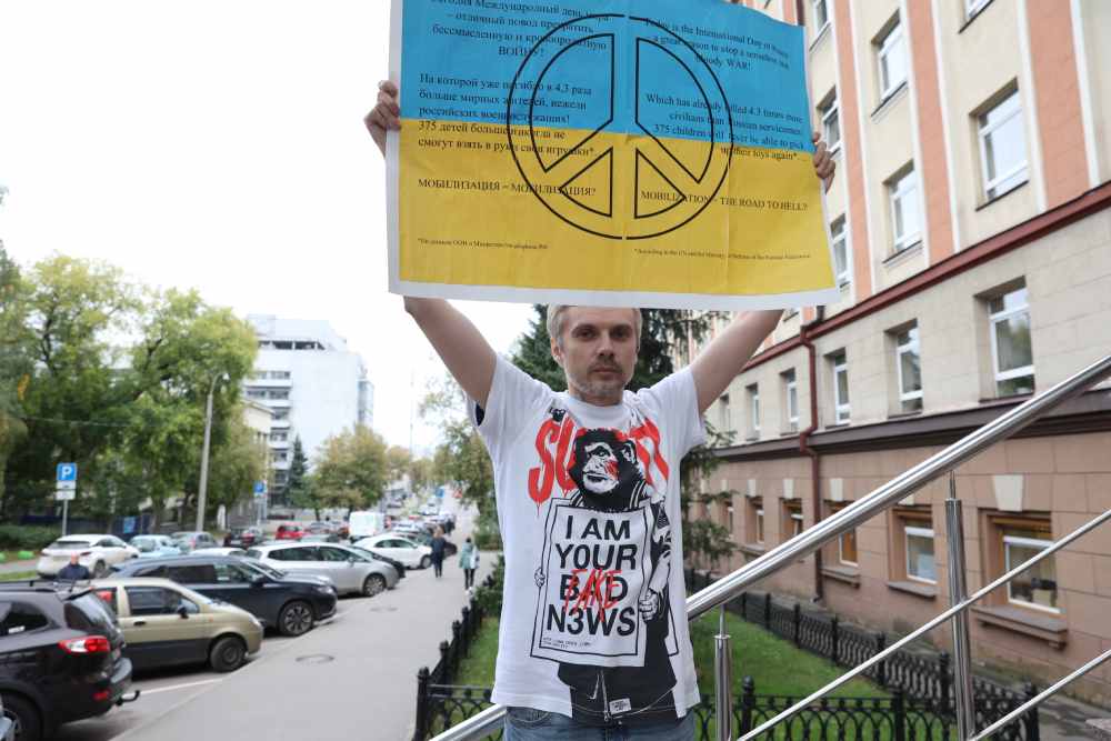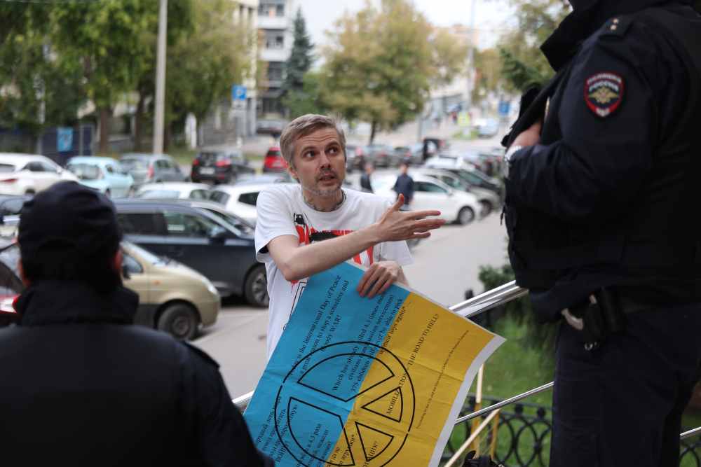 За пикет меня обвинили по двум статьям: ч. 1 ст. 19.3 – это неповиновение сотрудникам полиции при аресте и ч. 1 ст. 20.3.3 – это “дискредитация” вооруженных сил России (за надпись на плакате). Штрафа я за них получил 4 и 40 тысяч рублей соответственно (около 60 и 600 долларов). Обжаловал наказание в Мосгорсуде, но понятное дело, что это лишь оттягивание неизбежного, никто не признает меня невиновным.
