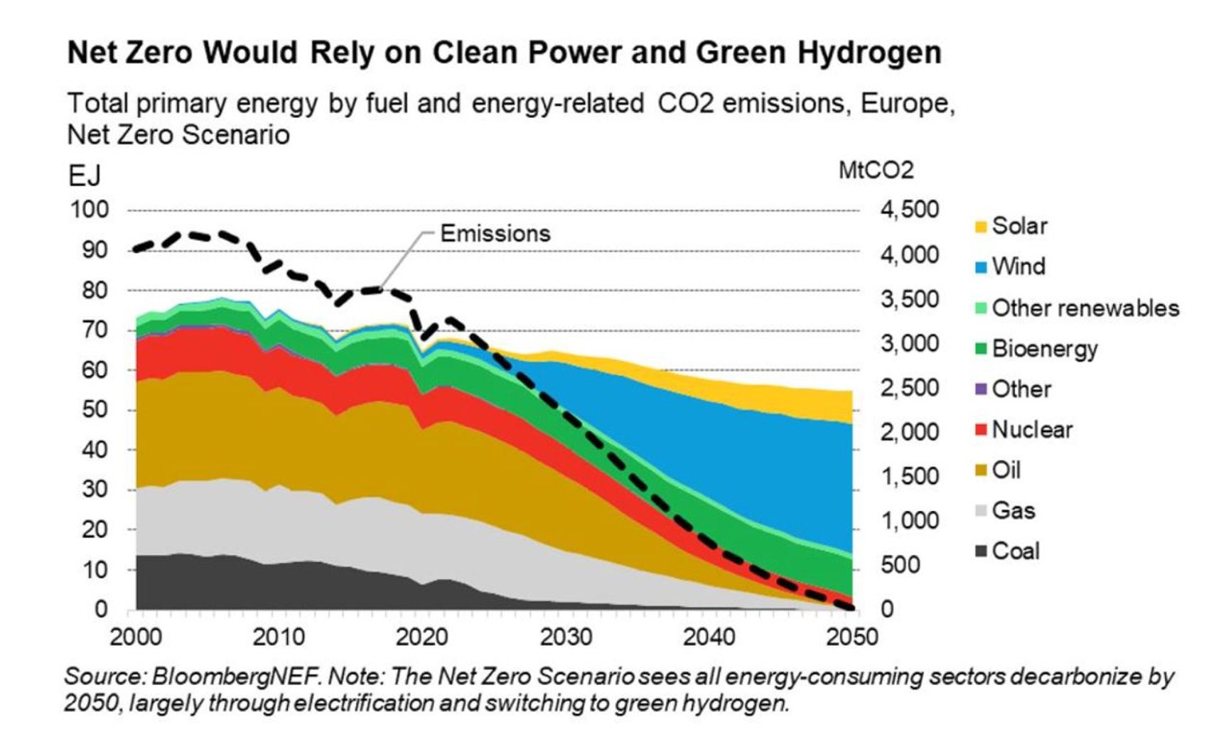 Согласно европейскому плану, в первые годы место российского газа займут аналогичные поставки из других стран, а также уголь и мазут, но к 2030 году доля углеводородов и угля должна сократиться — за счет роста рынка ВИЭ. Полный отказ от ископаемых видов топлива в Европе намечен на 2050 год и может обойтись в $5,3 трлн.