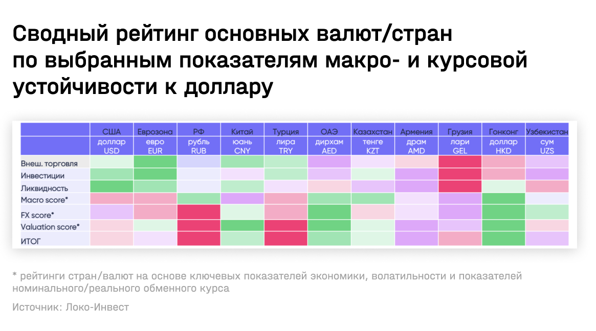 Для оценки «запаса прочности» валюты учитывались следующие факторы: