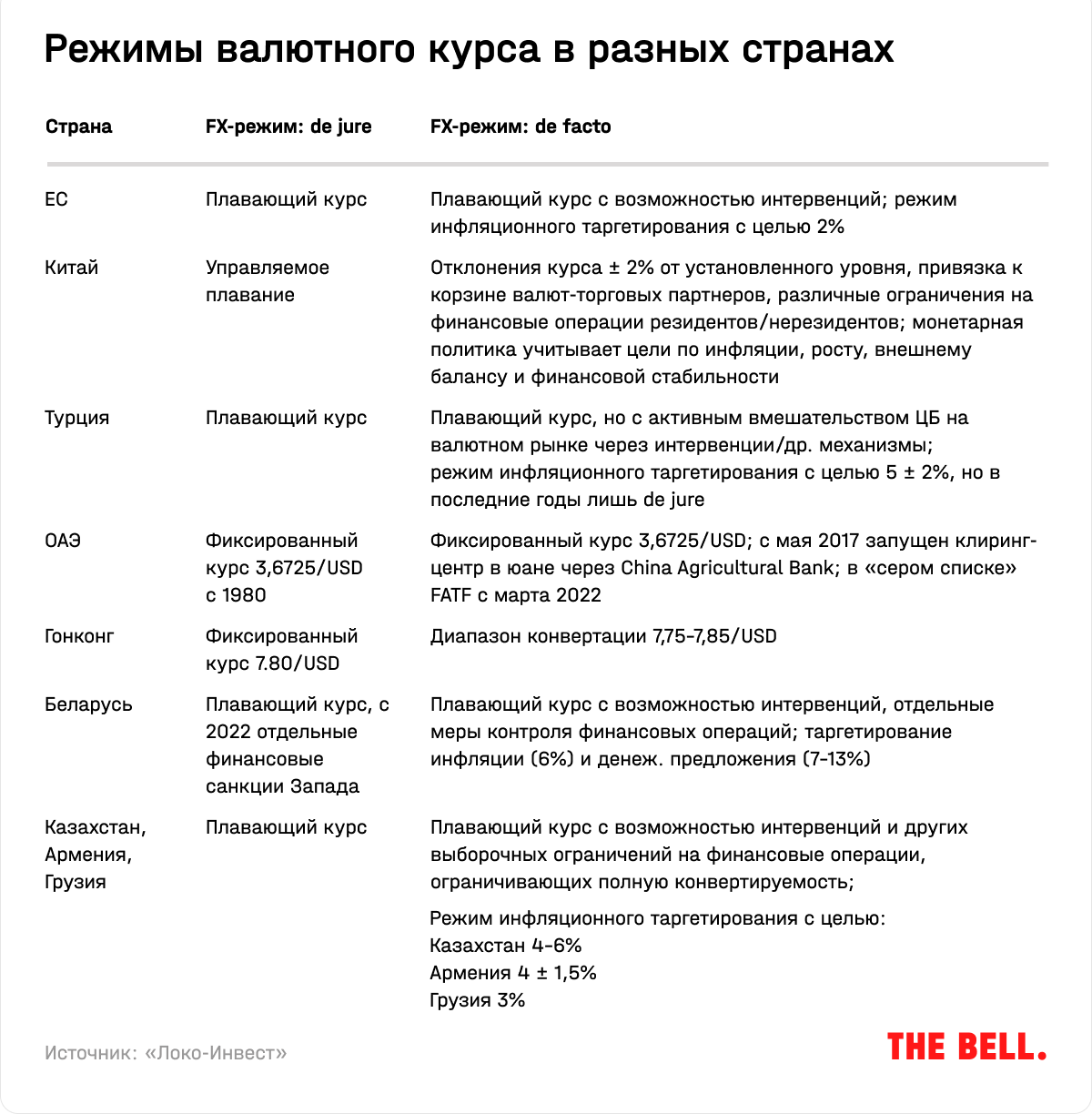 Аналитики также сделали краткую классификацию режимов валютного курса и монетарной политики по методологии МВФ.