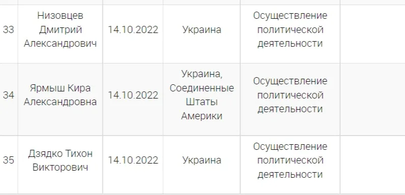 В графе «Сведения об иностранных источниках» у всех троих стоит Украина, у Ярмыш также США.