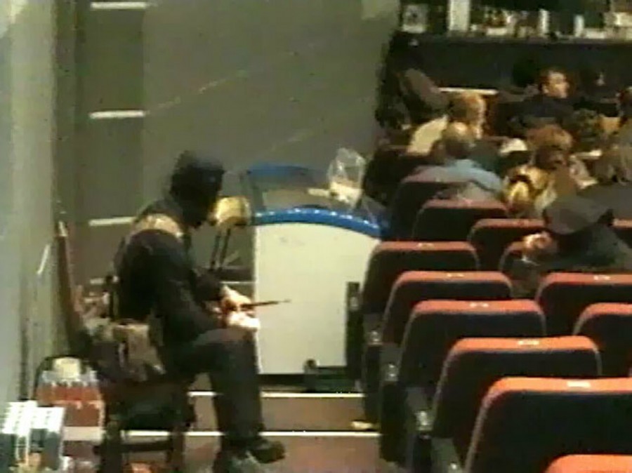 Валентин Барышников: Да, мне удалось связаться по мобильному телефону с помощником режиссера, он сказал, что сейчас не время разговаривать, но когда я просил подтвердить хотя бы что-то, он сказал что, да, двадцать человек примерно захватили зал, в зале около семисот зрителей. После этого он выключил мобильный телефон. Через полчаса нам удалось снова дозвониться ему, телефон все время был отключен, Он сказал, что не может разговаривать. Его спросили: "Ты заложник?" Он шепотом сказал: "Да, заложник" – и снова выключил телефон. Вот это все короткие разговоры.