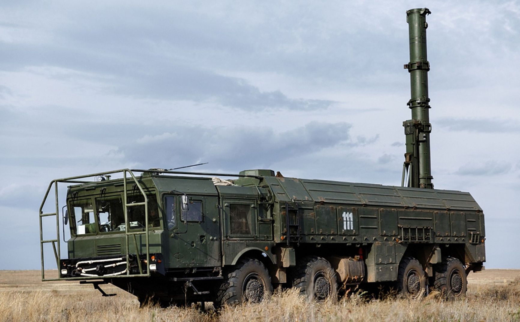 Screenshot of a video distributed by the Russian Ministry of Defense showing a night launch of an Iskander missile