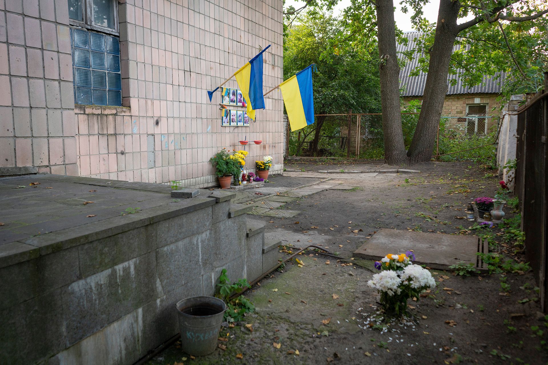 Iryna Kondratenko, a groundskeeper at the school and a mother of six, shows me some notable spots now forever associated with Russia’s occupation. One of the most well-known is the office building at 144 Yablonska Street that Russian soldiers used as a base back in the spring. It was outside this building that the occupiers executed eight members of Ukraine’s territorial defense in early March.