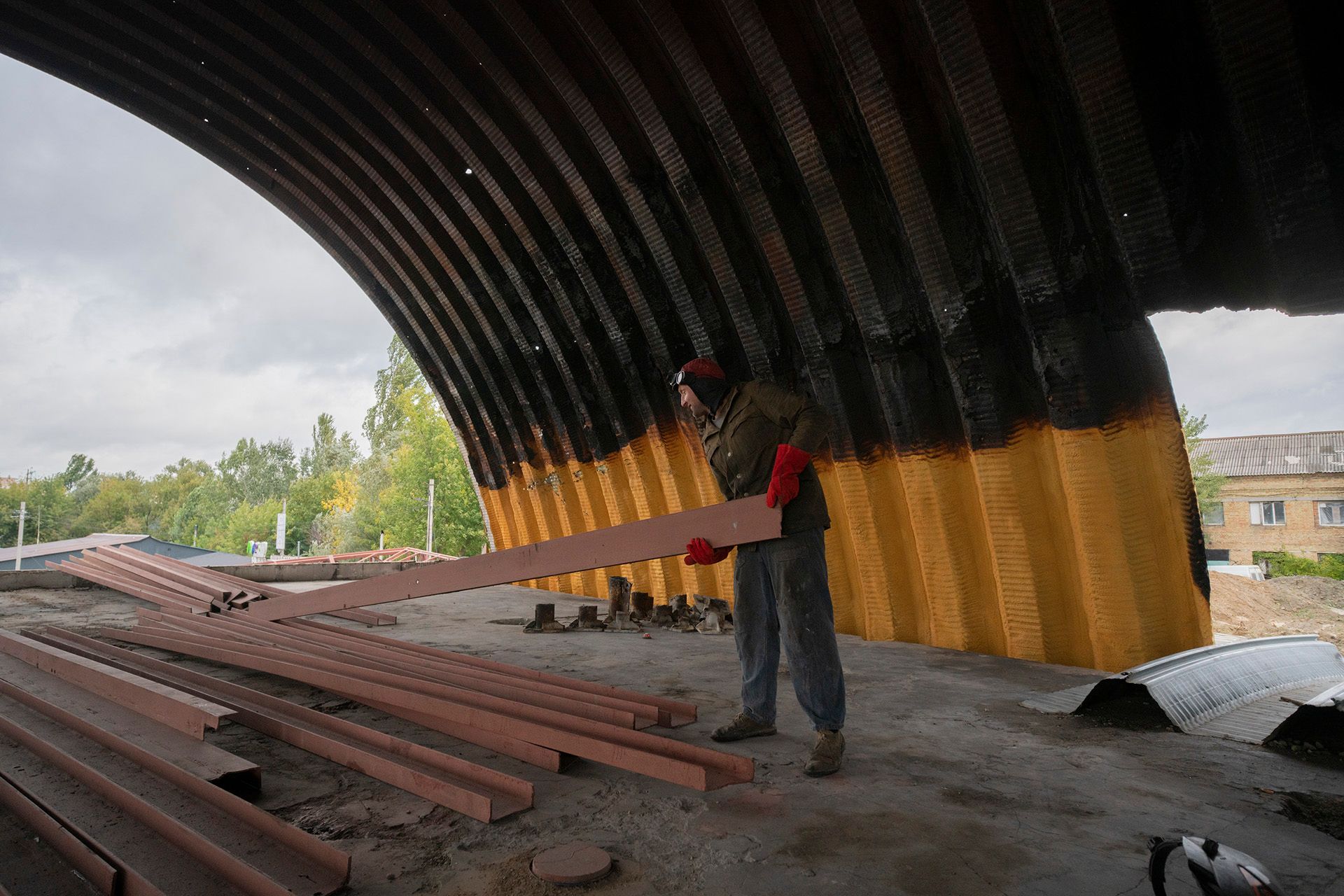 The school's windows are being replaced; the old ones were blown out of their frames when a convoy of Russian tanks was shelled just a few hundred meters away. A custodian named Tamara Mikhailovna says the rest of Bucha’s schools have already switched back to in-person learning; this is the only one still online. In-person classes will resume as soon as the building, which Russian soldiers lived in during the occupation, is repaired.