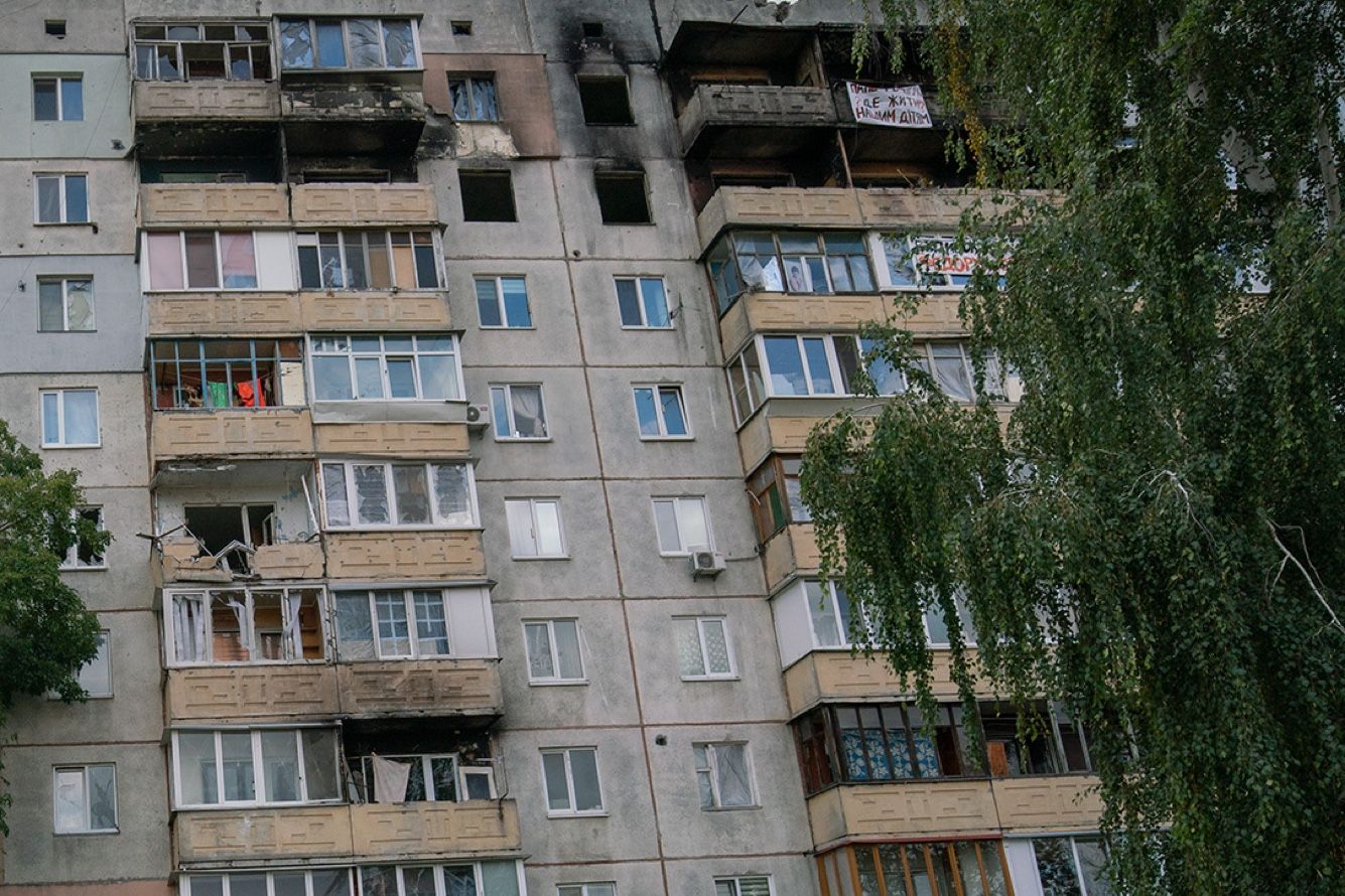 Further down the road, at 203D Yablonska Street, there’s a five-story apartment building, unremarkable except for the damage from the six shells that hit it during the occupation. Most of the windows still need to be replaced; so far, the city government has only been able to repair the roof.