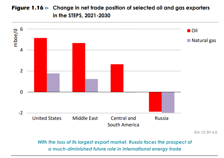 Конкретные цифры из долгосрочных прогнозов МЭА могут и не сбыться — но сам по себе тренд измениться не cможет. Сейчас Россия еще извлекает выгоду из роста мировых цен на энергоносители, но долгосрочно нынешний кризис играет против страны — разорвав отношения с западными потребителями и ускорив энергопереход, Москва лишила себя возможности спокойно готовиться к отказу крупнейших потребителей от ископаемого топлива.