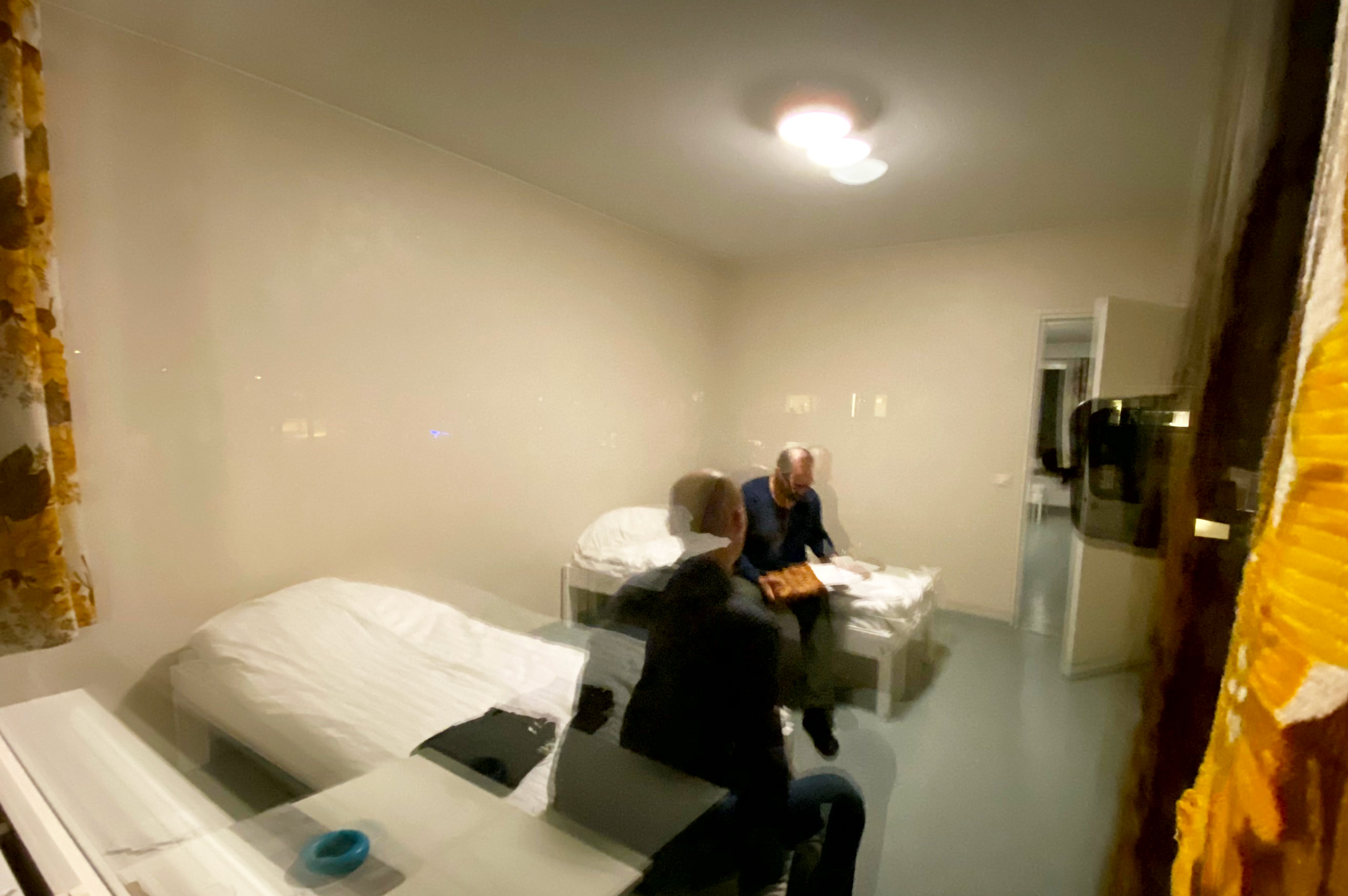 В квартире пустынно и необжито: в каждой комнате – по две односпальных кровати и встроенной кладовке для вещей, но ими никто не пользуется, вместо шкафов – рюкзаки с немногочисленными пожитками. Из мебели, кроме кроватей, кухонный стол и пять табуреток, по одной на каждого.