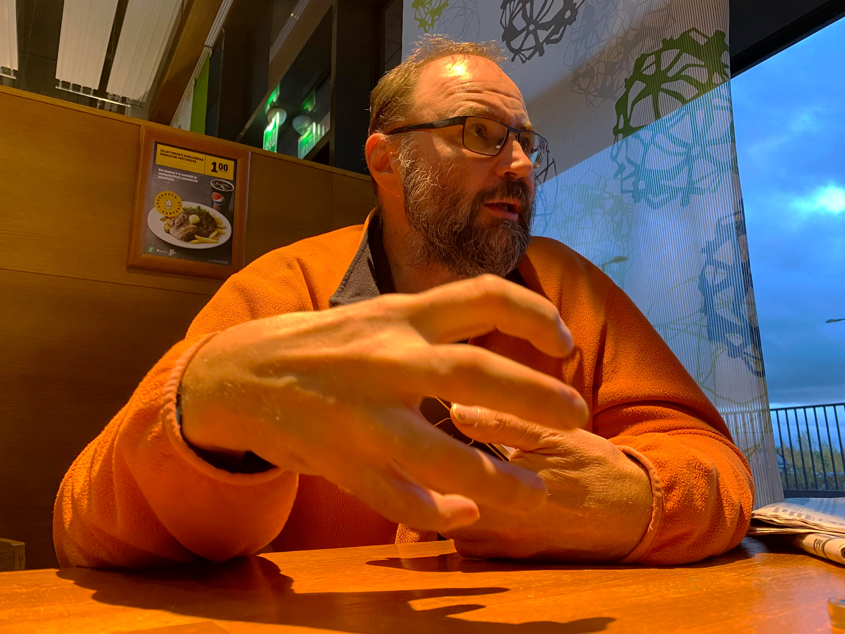 Найти постоянную работу – мечта каждого российского беженца. Не секрет, что в Финляндии дефицит рабочих рук. Сергей тоже надеется, что сможет пригодиться в новой стране. Он пересказывает свой диалог с полицейским, который оформлял его заявление на убежище, откатывая отпечатки пальцев.