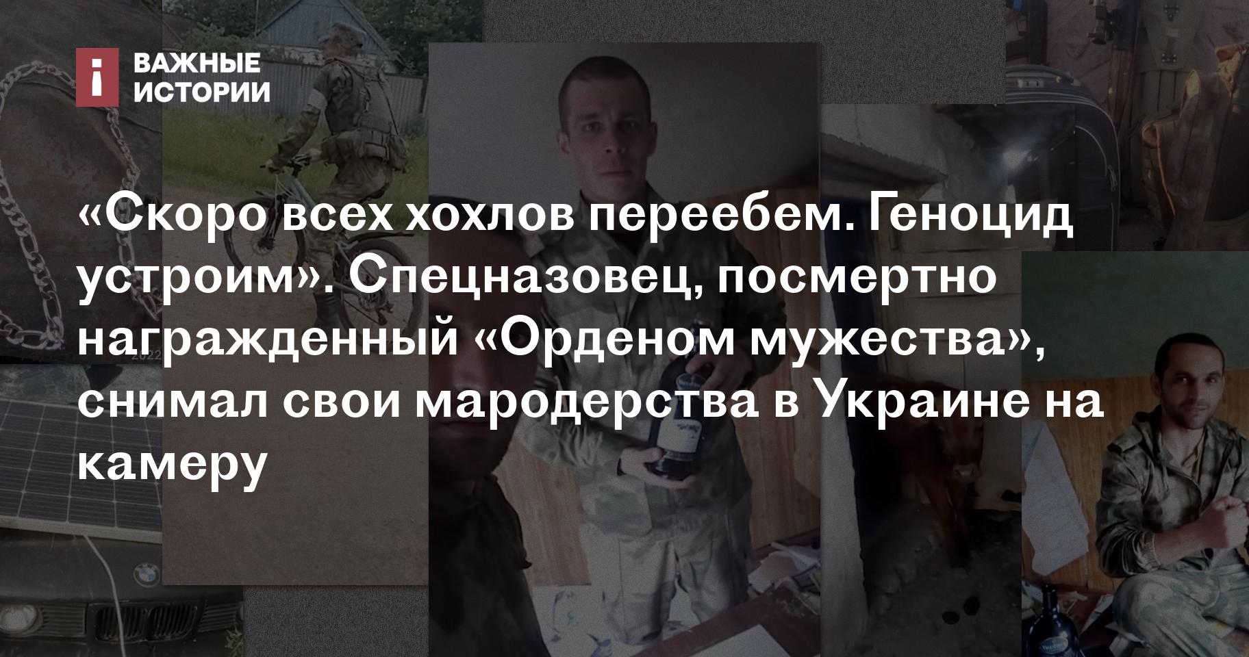 «Скоро всех хохлов переебем. Геноцид устроим». Спецназовец, посмертно награжденный «Орденом мужества», снимал свои мародерства в Украине на камеру