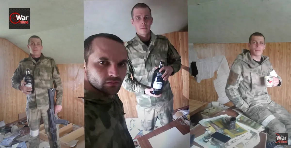Первое видео из Украины, снятое 30-летним Дятловым, датировано 28 апреля. В ролике он рассказывает, как они с «братиком» Зухрабом вошли в один из оставленных домов в селе Новая Каменка Херсонской области. Владислав показывает, как они с солуживцем пьют украденный алкоголь, а также сообщает, что они в доме «все разъебали, золото искали, но не нашли». Позже он все-таки находит в доме гривны.
