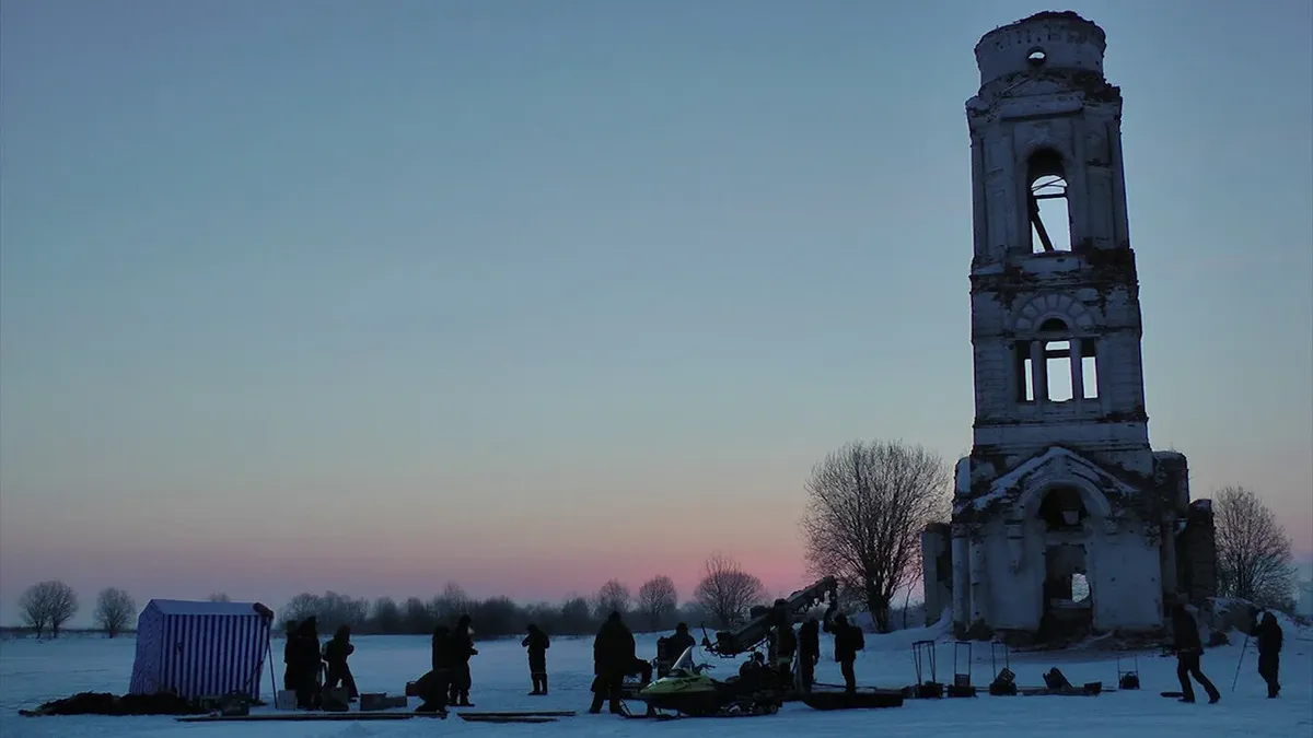 «А вон и колокольня видна в арке». Не просто гуляет — примеривается, через сложенные квадратиком свои неправильные пальцы, как через зрачок камеры, мысленное кино снимает. В этот момент веришь, что в зимней Костроме родится его новый фильм, как он любит — современное кино, но словно вне времени.