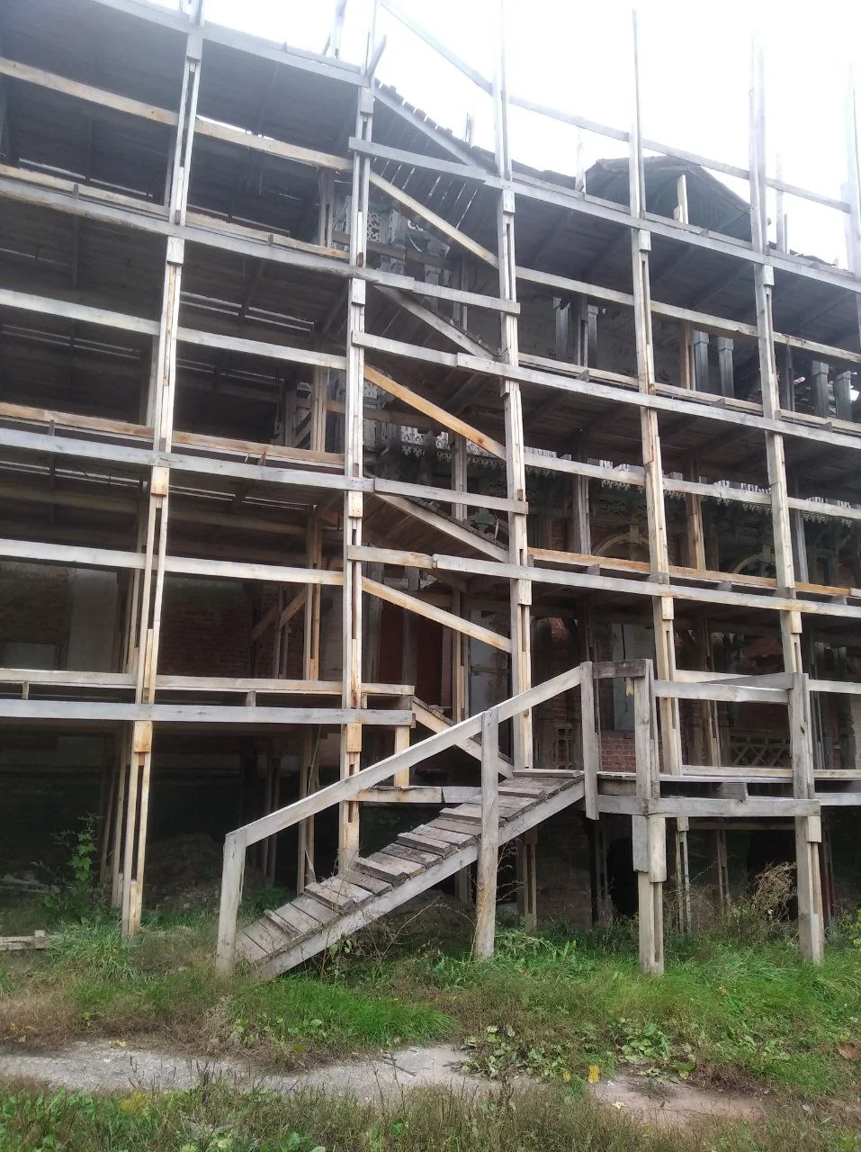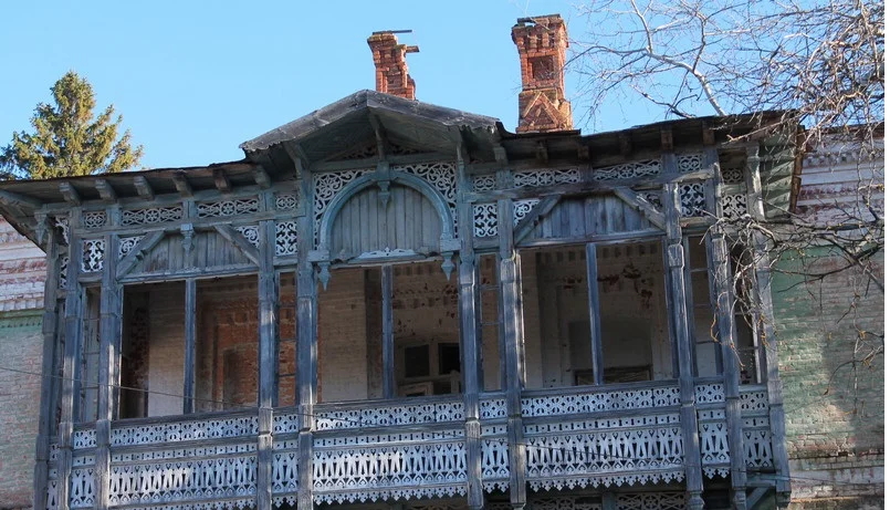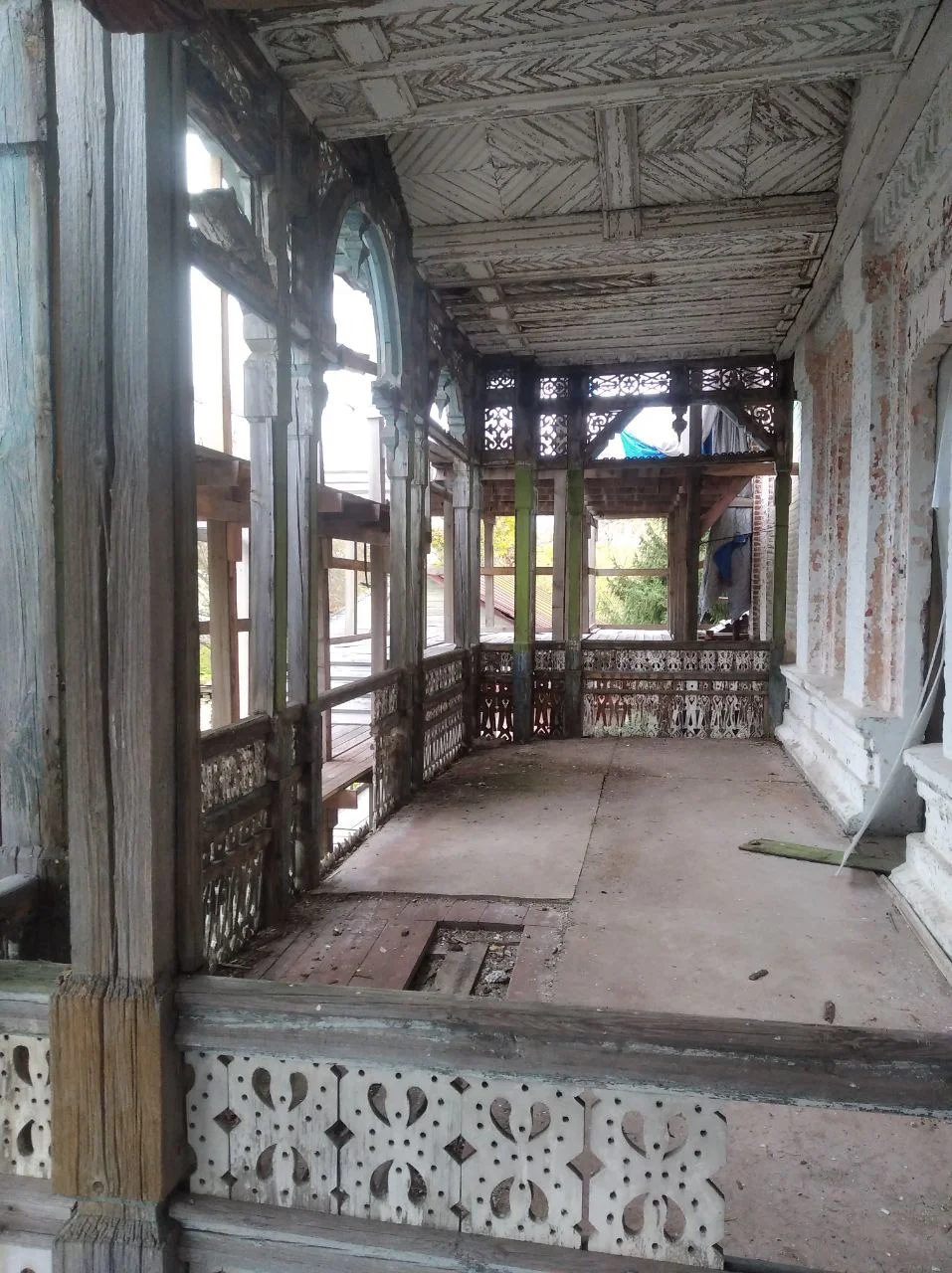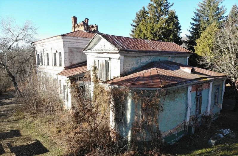 Под «реставрацию» попало только одно усадебное здание — дом, выстроенный для супруги владельца. Соседние постройки рушатся без участия вандалов — от старости.