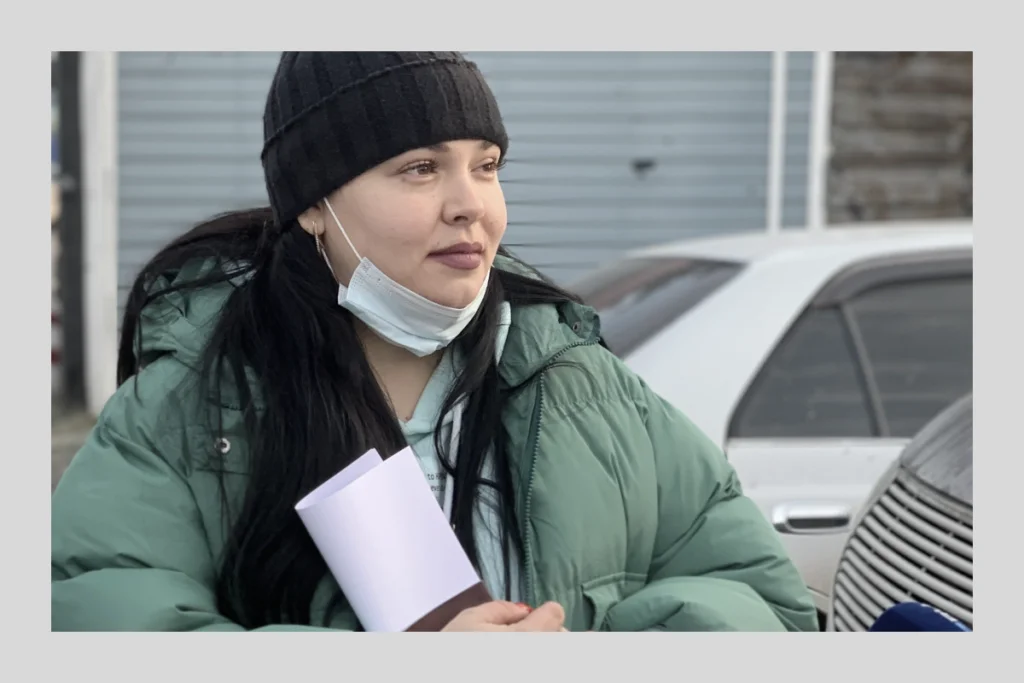 Перед тем, как группа зайдёт на территорию колонии, одна из самых активных родственниц — Наталья Джаниева — проводит короткий инструктаж для собравшихся. Женщины перешучиваются между собой о том, что их сбор могут принять за несанкционированный митинг.