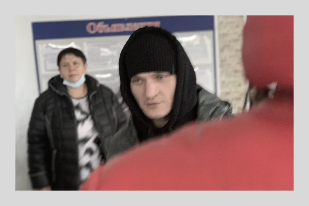 Вдруг в толпе появляется женщина, которая пришла сюда совсем по другой причине. Она встречает заключённого, который сегодня выходит на свободу. Его зовут Юрий. Когда он появляется в холле, его окружают со всех сторон. Родственники других заключённых начинают наперебой расспрашивать про визит ЧВК.