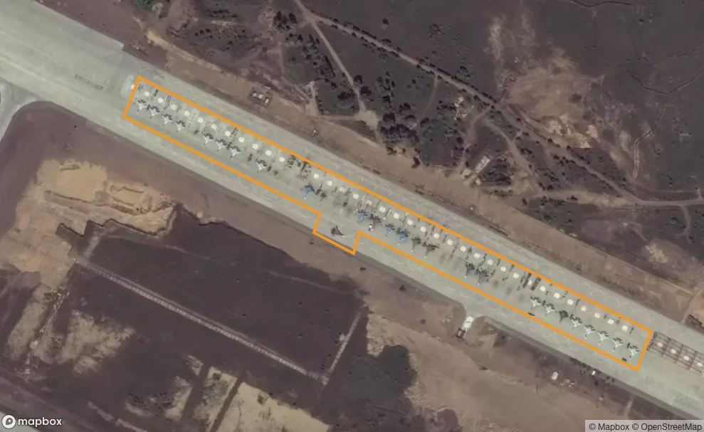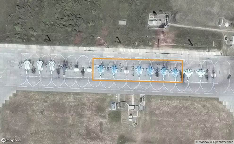 Самолеты бирюзового цвета можно заметить и на снимке из Морозовска, сделанного 2 июня. Оборудование и следы на взлетно-посадочной полосе указывают на повышенную активность.