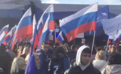"Возле лифта у входа в парк Левобережный, где был концерт, стояло два металлоискателя. Было видно, что сначала к сцене подогнали людей с флагами. У некоторых было написано, какой район представляют, и там были не только студенты, но и бюджетники. Людям кашу раздавали на полевой кухне, дым от нее шел, заслонял все", – отмечает собеседник.