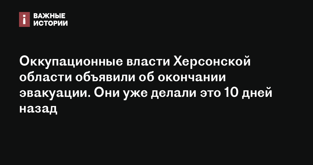 Оккупационные власти Херсонской области объявили об окончании эвакуации. Они уже делали это 10 дней назад