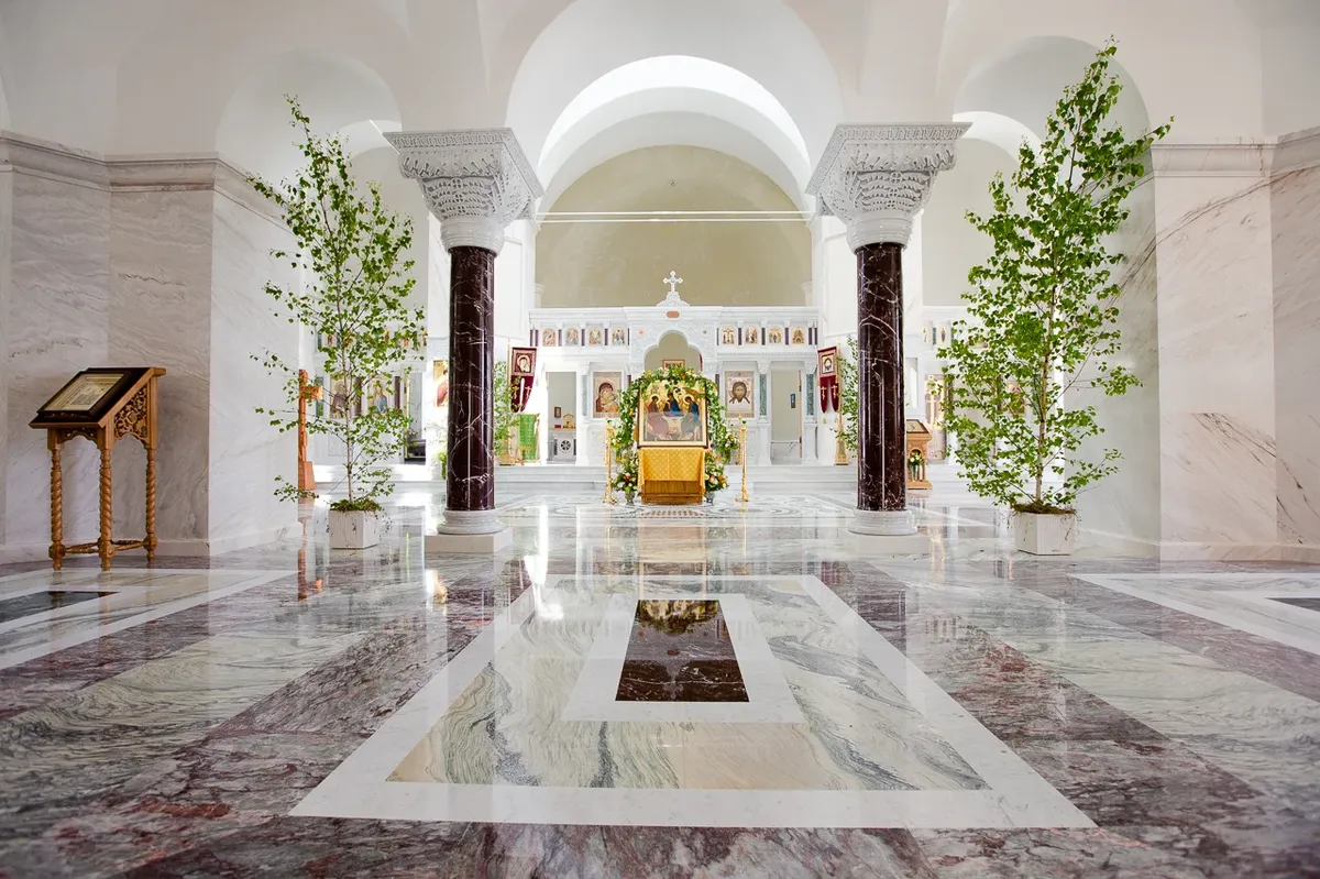 Мрамор использовался разных видов: итальянский, в том числе знаменитый каррарский, а также турецкий и российский. Эта роскошь сильно отличается от бедных интерьеров крошечного деревянного киевского храма, где служил наш персонаж до отъезда.