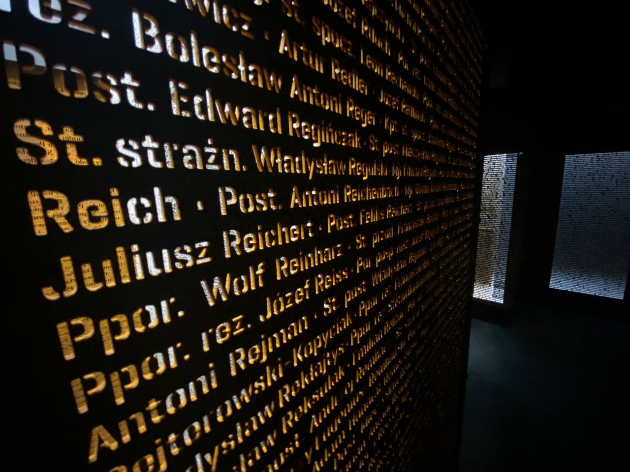 Мемориал катынского расстрела в музее памяти Сибири. Здесь на колоннах написаны имена погибших.