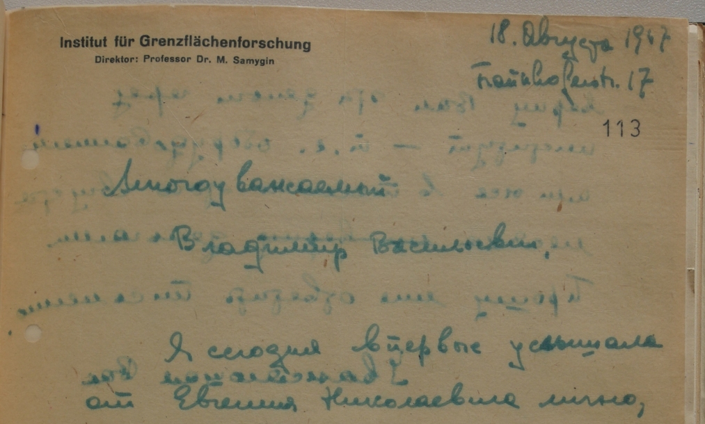 Оказалось, что этот Институт располагался в Мюнхене в доме, который ранее принадлежал писателю Томасу Манну, и так как после войны права Томаса Манна на дом были восстановлены, Самыгин даже написал специальное письмо Манну с просьбой поддержать его при проведении ремонта этого дома, потому что в нем сейчас находится его Институт, который дает работу как минимум тридцати иностранным ученым и техническому персоналу, которые в данный момент находятся в Германии в очень тяжелом положении. Я думаю, что эта цифра была существенно преувеличена, столько сотрудников у него никогда не было. Скорее всего, там работало всего несколько человек. Но, как бы то ни было, либо это письмо не дошло до Томаса Манна, либо писатель не ответил Самыгину, и в марте 1949 года Институт пришлось закрыть.