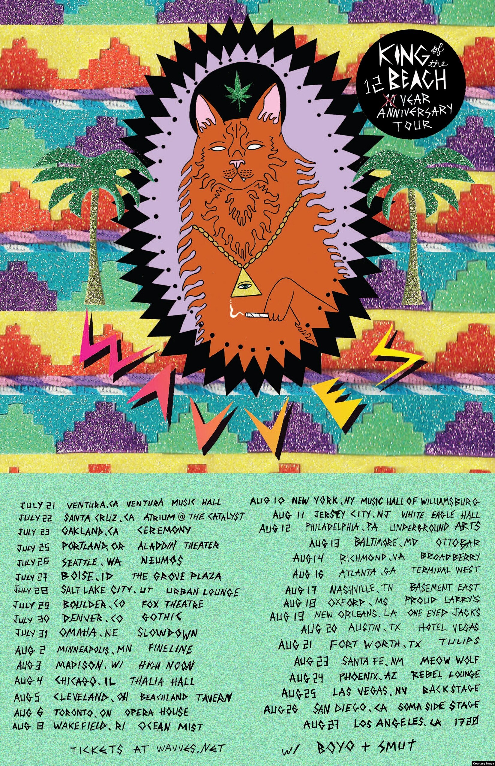 К музыке Wavves (которую не все и музыкой-то сочтут) можно приклеить много ярлыков: панк; гаражный рок; нойз; lo-fi (учитывая качество записи), даже готик-рок – но при всём этом сёрф! Быстрое, короткое, шумное, с мрачными похабными текстами и с настроением курортных хулиганов. Коллектив пляжных беспредельщиков стал очень популярен в концертном формате, причём не только в США, но и в Европе. Периодически случались эксцессы: так, на знаменитом фестивале Primavera в Барселоне фронтмен Натан Уильямс подрался прямо на сцене(!) со своим барабанщиком Райаном Алшем. Обиженный ударник вскоре покинул группу; его заменил Зак Хилл. Пришёл и новый бас-гитарист, Стиви Хоуп, и в этом составе "Воллны" записали свой самый известный альбом "Король пляжа"(2010). Продюсировал его лауреат премии "Грэмми" Деннис Херринг (работал в числе прочих с Элвисом Костелло и блюзменом Бадди Гаем). С этого альбома – песня с достоевским названием "Идиот".
