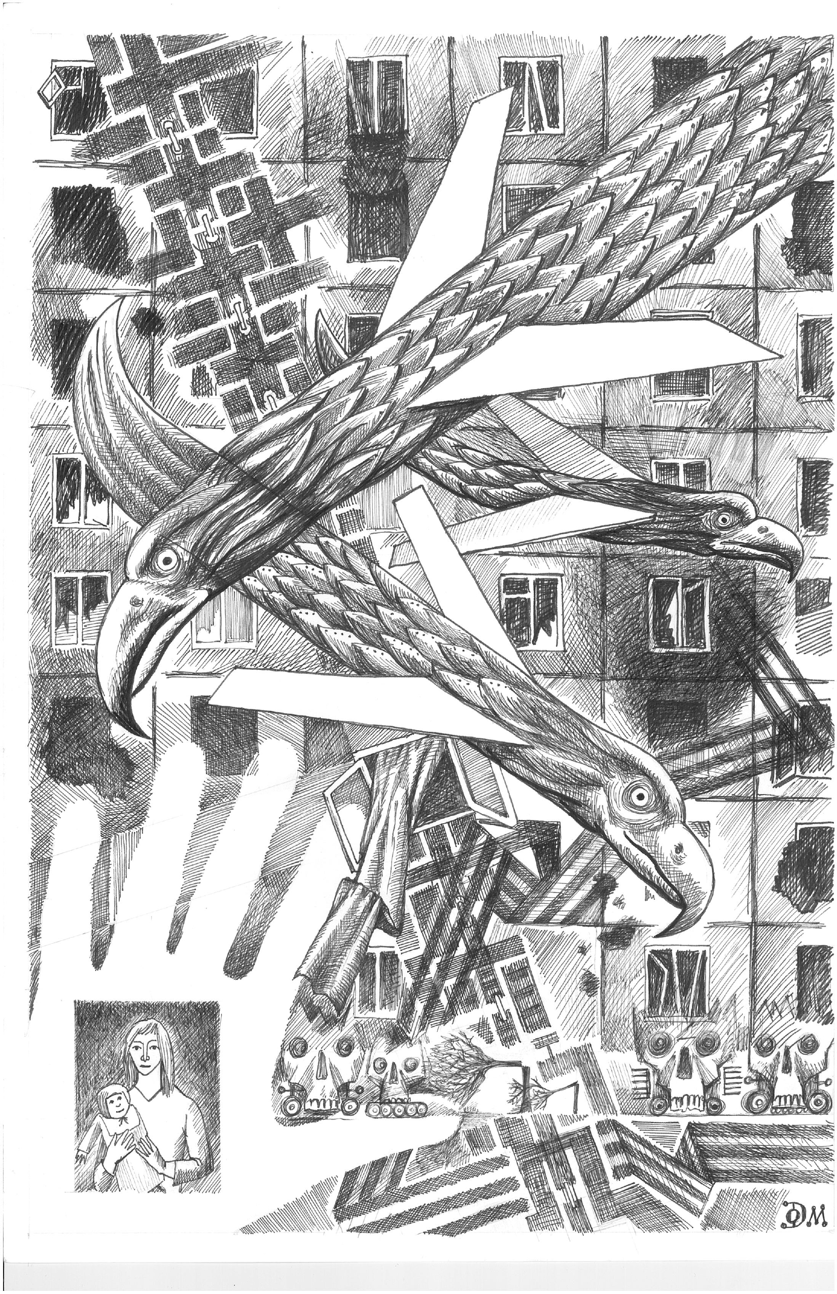 – В моем творчестве никогда не было темы человеческого горя. А с началом войны у меня в голове была одна кровь. Летом я смог нарисовать всего пару грустных душещипательных картин, например, с ангелом, или зверями, пронзенными стрелами. Они были такими кровоточащими…