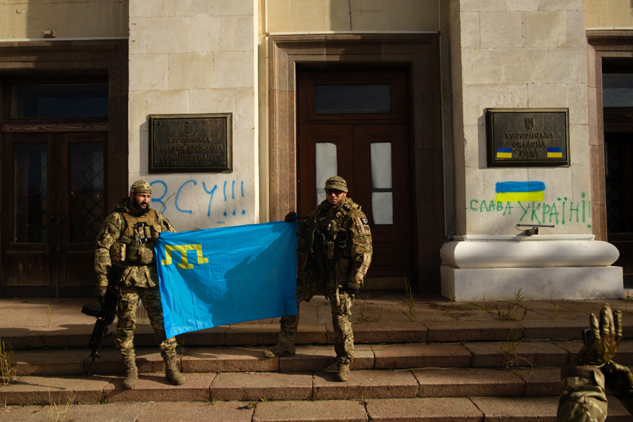 Весь мир увидел исторические кадры из освобожденного Херсона. По выражению рашистских пропагандистов - "население, в ужасе встречающее своих палачей". Херсонцы не устают праздновать. Даже оставшись из-за оккупантов без света, тепла и воды. В их пирамиде потребностей именно свобода стоит на первом месте. К ней уже остальное приложится. Они обнимают радостно всех - и военных, и журналистов, всех, кто для них символизирует освобождение. Достают флаги, которые прятали всю оккупацию, и просят на них расписаться. У кого нет - просят расписаться на одежде. ВСУ продолжают освобождать украинскую землю.