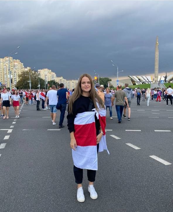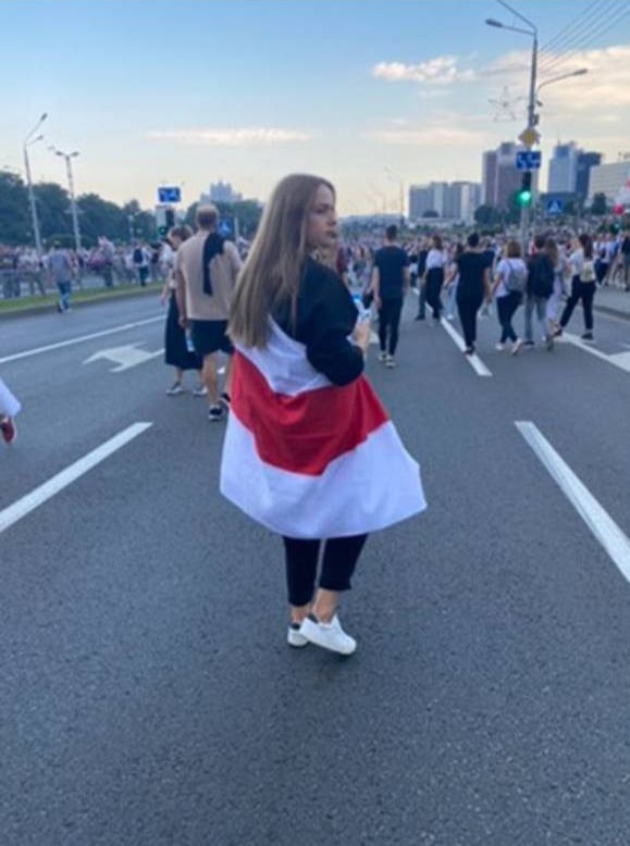 Сообщается, что задержанная работает менеджером логистической компании Trans Solutions. После публикации фото на нее кто-то пожаловался силовикам. В неофициальном телеграм-канале белорусских силовиков появилось видео, где она подтверждает, что участвовала в протестах. Она помещена в ИВС, против нее возбудили уголовное дело об активном участии в «групповых действиях, грубо нарушающих общественный порядок» (статья 342 УК РБ).