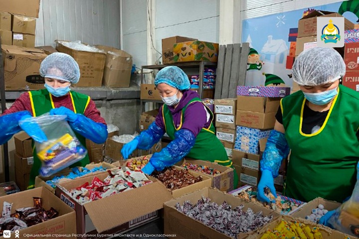«„Защитникам Родины из Бурятии с любовью“. С такой надписью отправится более 13,5 тысяч новогодних подарков, 100 из них направят бойцам, которые находятся в госпиталях. Тем, кто сейчас находится далеко от дома, кто выполняет свой служебный долг отправится частичка Родины, — сказано в сообщении. — В новогодний мешочек упакованы сладости, средства личной гигиены, теплые носки. Однако, самое важное и теплое содержание подарка — поздравительные письма от детей из Бурятии».