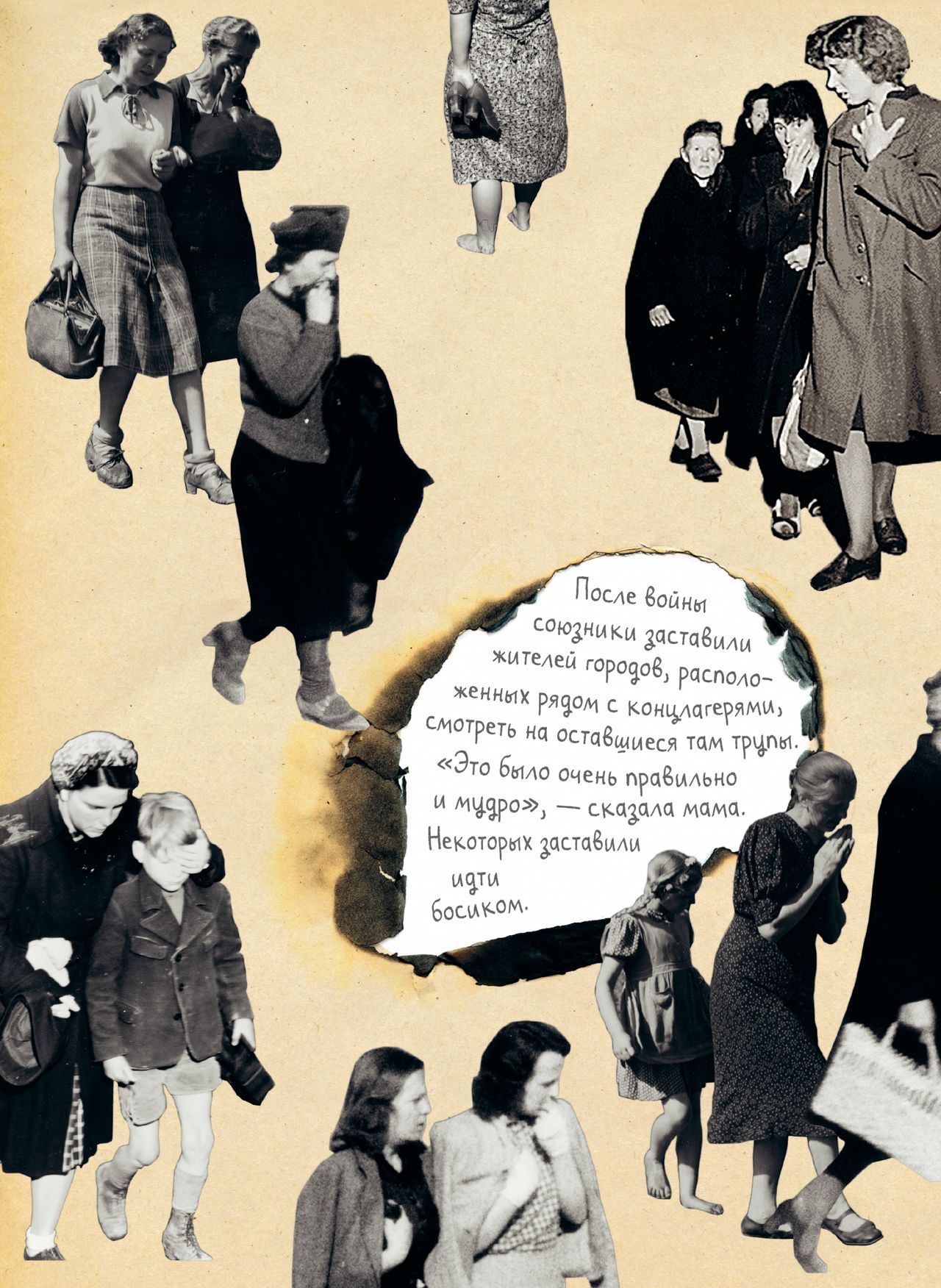 — Думаю, чувство вины меняется со временем. В книгу я включила фотографии немцев, которых после войны союзники обязали посетить концентрационные лагеря — чтобы они потом не говорили, что это все выдумка. И выражение лиц этих людей говорит о многом. Я уверена, что они чувствовали себя виновными. Но шок был таким большим, что они могли упоминать об этом лишь вскользь или говорить: «Наверное, шесть миллионов жертв холокоста — это преувеличенная оценка» или «Нас просто обманули наши руководители».