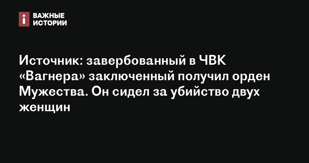 Источник: завербованный в ЧВК «Вагнера» заключенный получил орден Мужества. Он сидел за убийство двух женщин