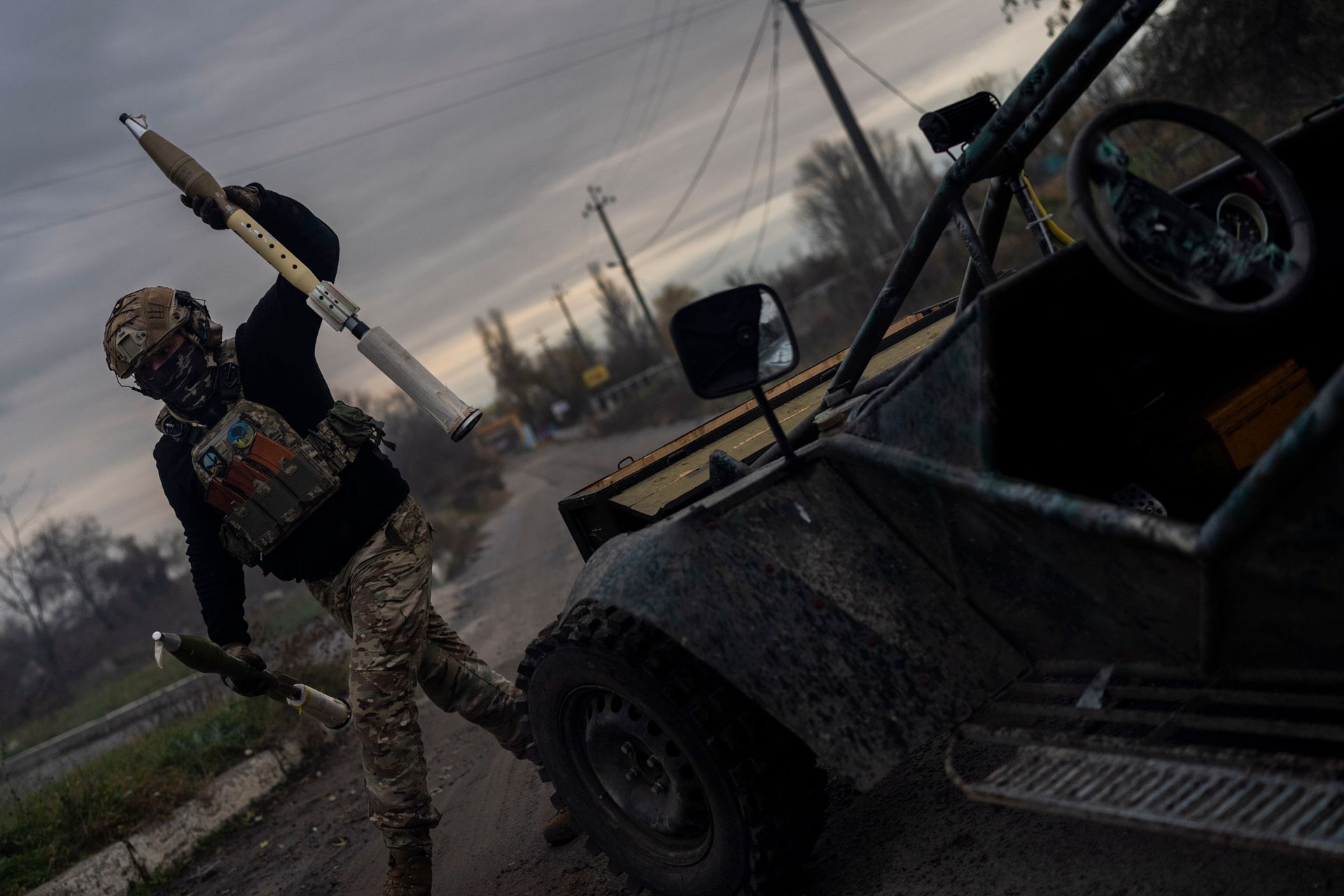 Украинские военнослужащие ведут огонь по российским позициям на передовой возле Херсона. Херсон был единственным областным центром Украины, захваченным российской армией с начала вторжения в страну. Он находился под российской оккупацией более восьми месяцев — с начала марта. Теперь, заявляет Украина, армия ВСУ планирует следующий шаг. На фотографиях — украинские военные обстреливают российские позиции с багги — легкого автомобиля, предназначенного для езды по бездорожью. Они оборудованы гранатометом СПГ-9.