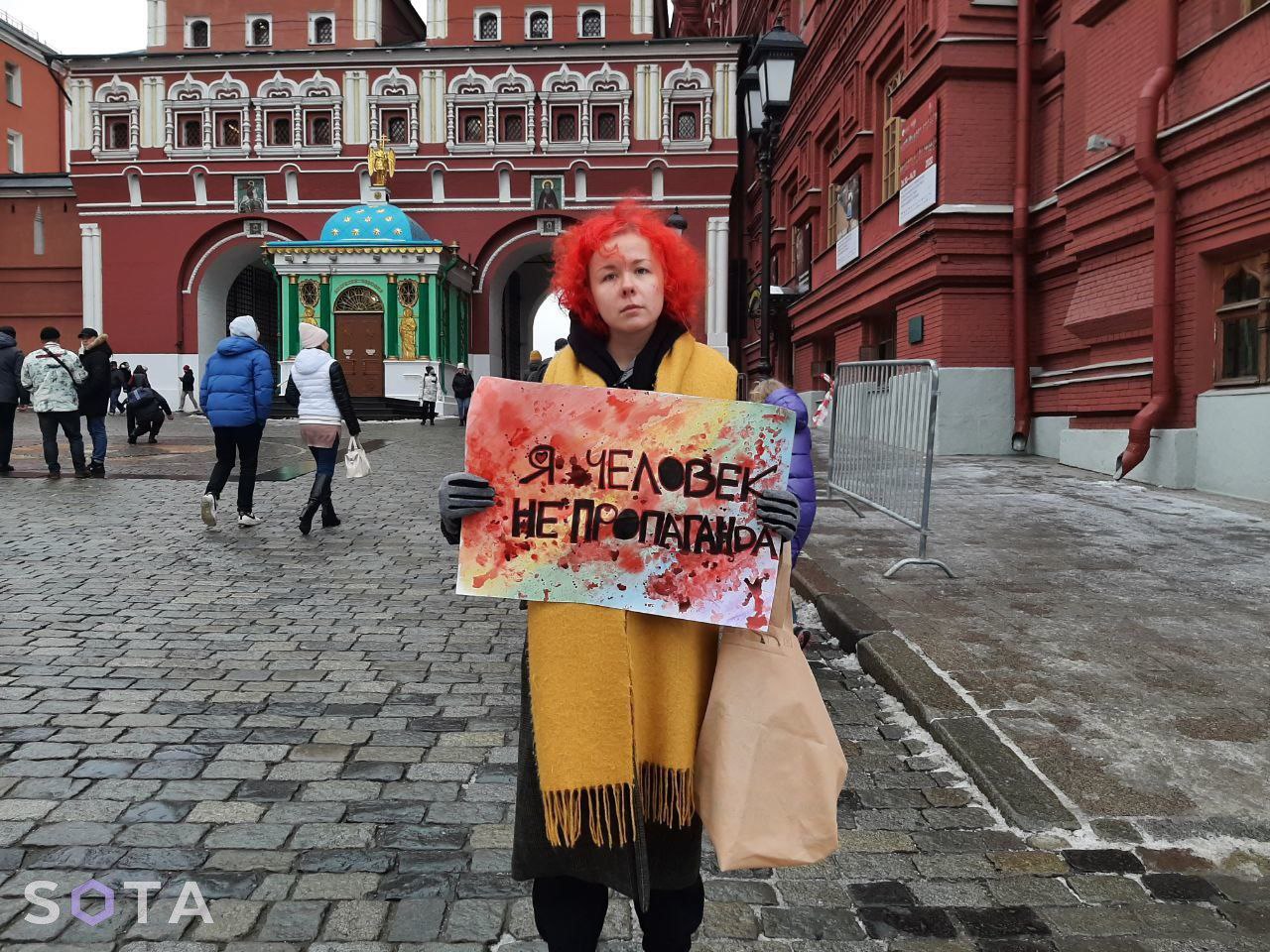В Москве задержали пикетчицу, выступившую против закона об «ЛГБТ‑пропаганде»; на нее составили протокол о нарушении правил проведения акции