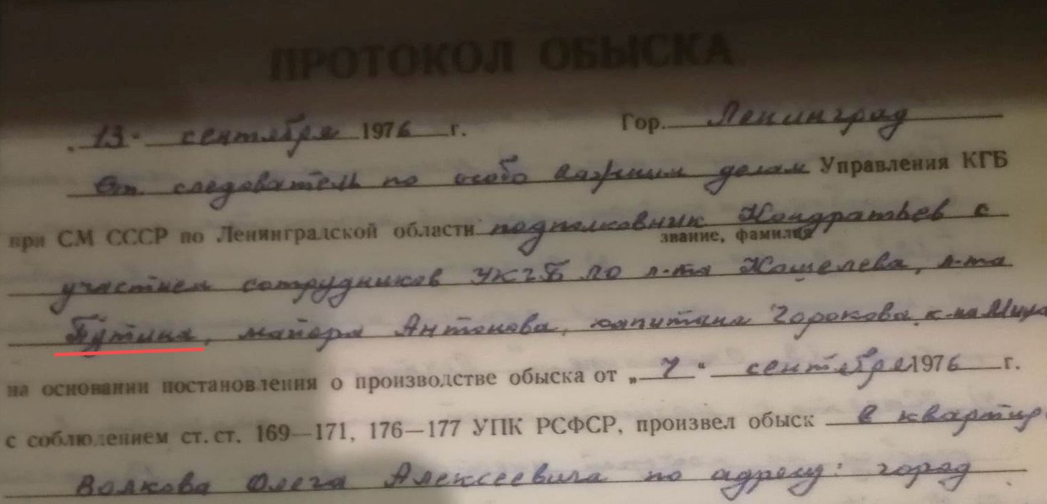 According to the report found in the Museum of Political History, Vladimir Putin and other KGB officers searched Oleg Volkov’s home, a month after the artists painted their inscription, on September 7, 1976. The report about the search was written a few days later, on September 13, when Rybakov and Volkov were arrested. They were charged with malicious hooliganism and damaging state property and historical and architectural monuments. Rybakov was sentenced to six years in prison. Volkov got seven years.