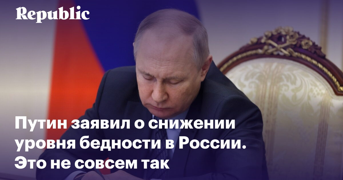 Владимир Путин сегодня в режиме видеоконференции провел совещание с членами правительства РФ. Президент заявил о годовом снижении в России уровня бедности с 11% до 10,5%. Если сравнивать эту цифру с официальными данными прошлых лет, то количество беднейших россиян вернулось к показателю десятилетней давности и за это время его удалось улучшить лишь на 0,2%.