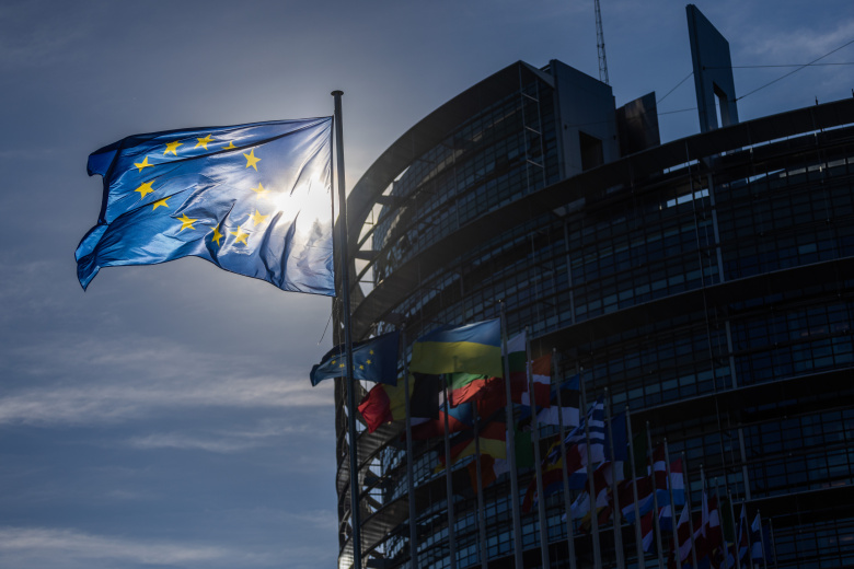 Флаги ЕС перед зданием Европарламента