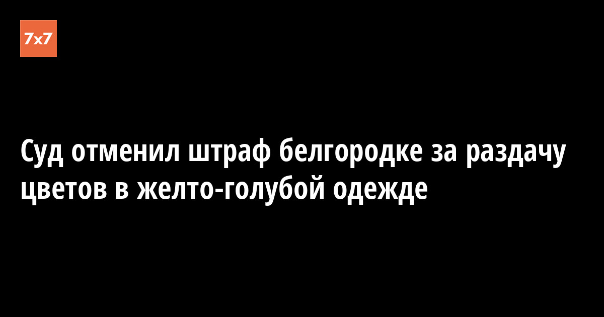 Белгородский областной суд отменил штраф местной жительнице за раздачу цветов в желто-голубой одежде. В мае Елена Егорова получила штраф в 15 тыс. руб. за нарушение правил проведения публичных мероприятий (статья 20.2 КоАП РФ). Об этом 30 ноября сообщило местное издание «Лимон».