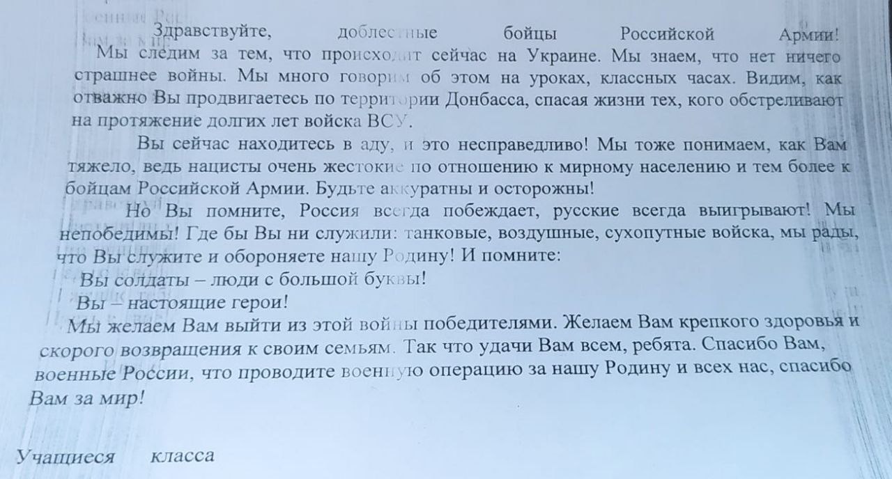 Петербургских школьников заставили от руки переписать тексты писем воюющим в Украине военным