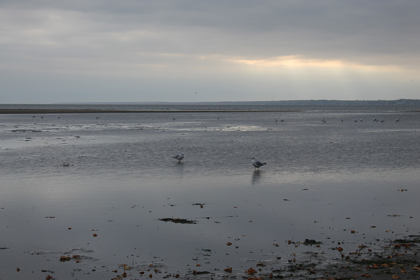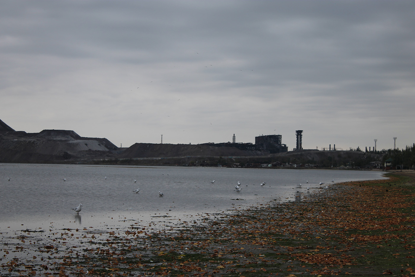 Сегодня работаем сокращенно, так как воскресенье, это очень радует. Наконец-то появилось чуть больше времени для прогулки по городу, поэтому я взял фотоаппарат и пошел к морю. Было немного страшно. На подходе к морю был дом, сгоревший почти полностью, и в одной из квартир этого дома горел свет и играла музыка. Выглядит очень странно. По всей дороге к морю видно эхо войны: остатки снарядов, следы от траков танков, гильзы от патронов и огороженные лентами участки, куда лучше не наступать, если хочешь жить. А вот на море тишина. Море огромное и спокойное. На улице пасмурная погода, а я как раз люблю море не в сезон, потому что в таком случае вокруг него спокойно и мало народа. Тут сейчас тоже мало народа, но вот о спокойствии говорить глупо. Где-то вдалеке летели два вертолета, кто-то ловил рыбу, а чуть дальше видно руины «Азовстали», полностью черные и сгоревшие.