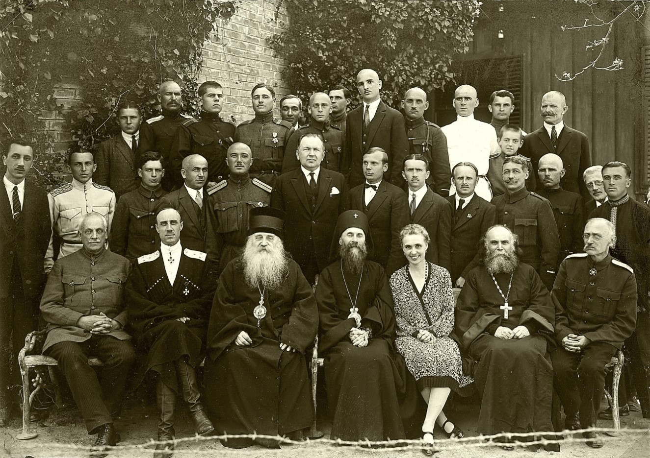Петр Врангель (второй слева, сидит), митрополит Антоний (Храповицкий) и члены РОВС в Югославии, 1927 год. Wikimedia / "Бабель"