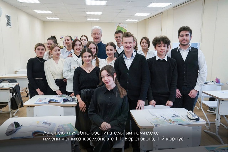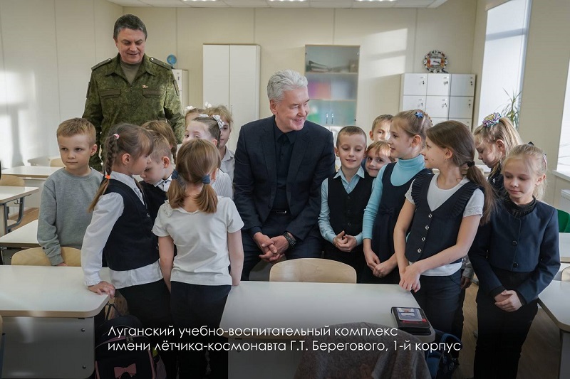 Кроме военных и врачей, мэр Москвы посетил учеников и учителей Луганского учебно-воспитательного комплекса имени летчика-космонавта Г.Т. Берегового.[fancy_gallery gallery=1]