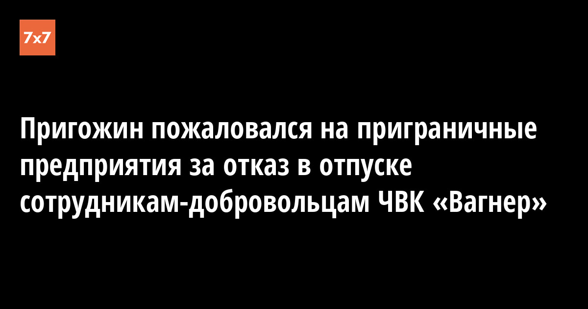 Пригожин пожаловался на приграничные предприятия за отказ в отпуске сотрудникам-добровольцам ЧВК «Вагнер»