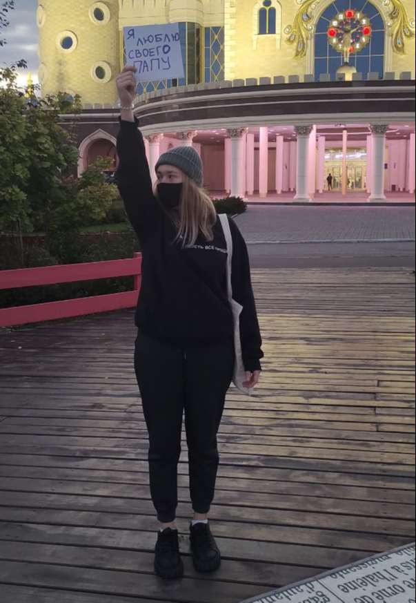 Поводом стало то, что 24 сентября она вышла на акцию против мобилизации с плакатом "Я люблю своего папу".